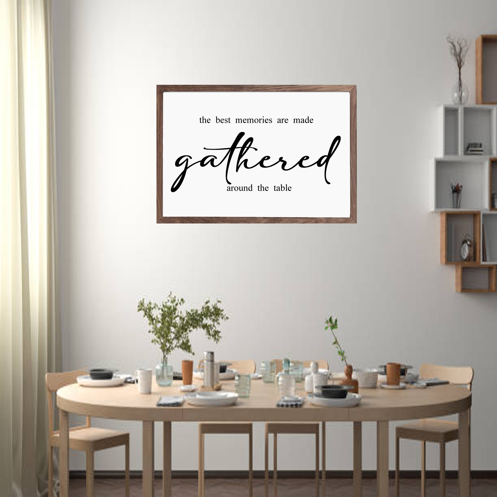 Gather Sign Farmhouse Sign. The total sign measures 10x14 but please note that the dimensions listed are not the actual size of the sign. To get the actual size, please add 1.5 inches to the top and bottom measurements. For example, a 10x24 sign would be 11.5x25.5.